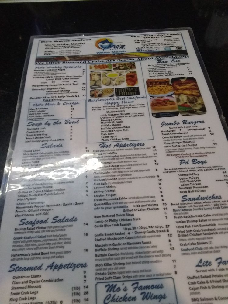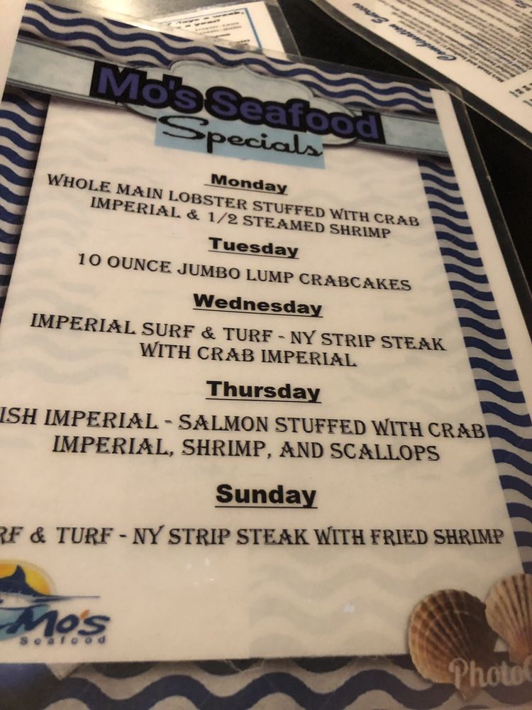 Welcome to Mo's Seafood, a beloved restaurant in Middle River, MD, known for its delightful seafood offerings. Located at 9727 Pulaski Hwy, Mo's Seafood offers a wide range of options for all types of diners. From Maryland Crab Soup to Cream of Crab Soup, the menu is filled with flavorful choices. Their salads, like the Shrimp Salad Platter and Mo's Fisherman's Salad Bowl, are fresh and satisfying. Customers rave about the delicious crab cakes and cream of crab soup, making Mo's a must-visit spot when in Maryland. The full bar, outdoor seating, and friendly staff create a welcoming atmosphere for guests. With happy hour specials and impeccable service, Mo's Seafood is the perfect place to enjoy a fantastic meal with friends and family.
